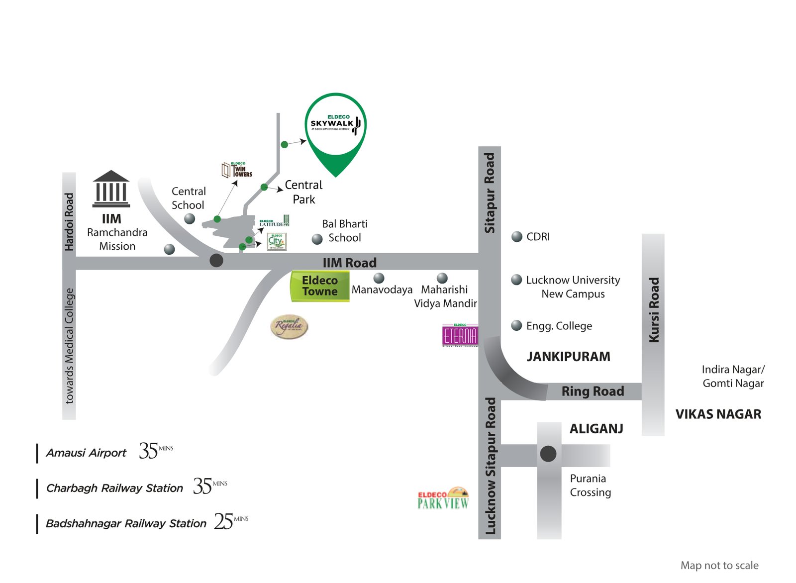 Enjoy the calm of premium living with effortless access to essential amenities—located close to Gomti Nagar and important city centers. Eldeco Skywalk offers a perfect harmony of comfort and convenience.